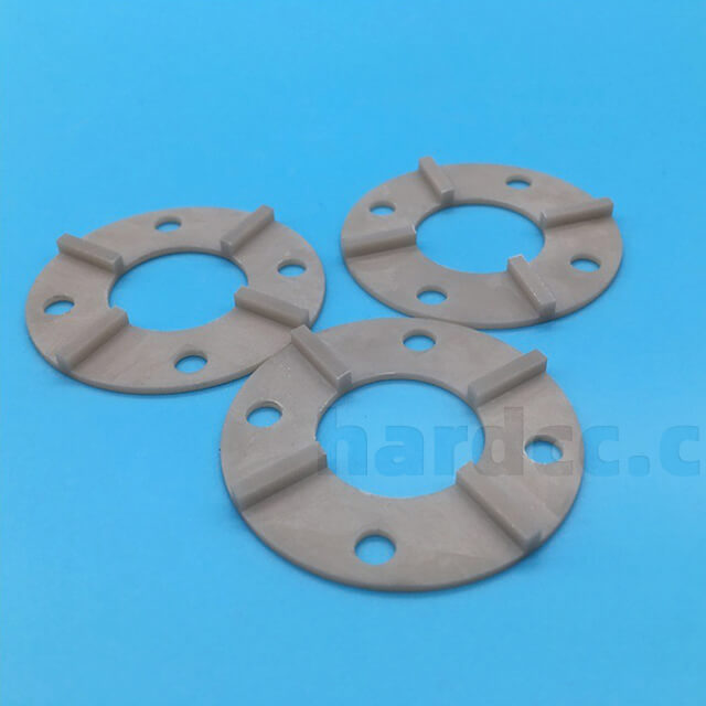 氮化铝陶瓷圆片,别名精密打孔陶瓷环件,充分利用了氮化铝(AlN)的物理和化学特性,为各种高端应用提供了理想的材料选择: